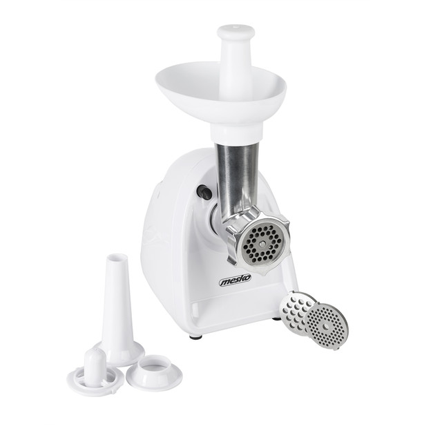 М'ясорубка оснащена 3 змінними ситами: для ковбаси, маку і середнім ситом. В комплект також входить насадка м'ясника і штовхач.