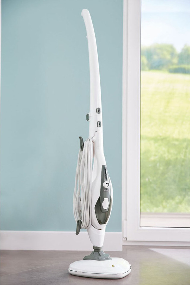 Зручність використання: пароочисник-парова швабра має компактний дизайн, що робить її простою у використанні та зберіганні. Вона також швидко нагрівається й має довгий шнур, що дає змогу легко очищати великі поверхні.