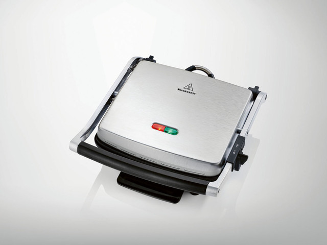 Контактний гриль SilverCrest SPM 2200 A2 виготовлений у корпусі з неіржавкої сталі.