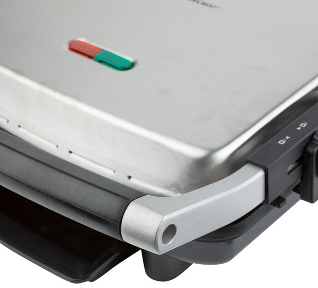 Поверхня робочих пластин рифлена — під час готування вона залишає на апетитних стейках і італійських паніні характерні засмажені смужки.