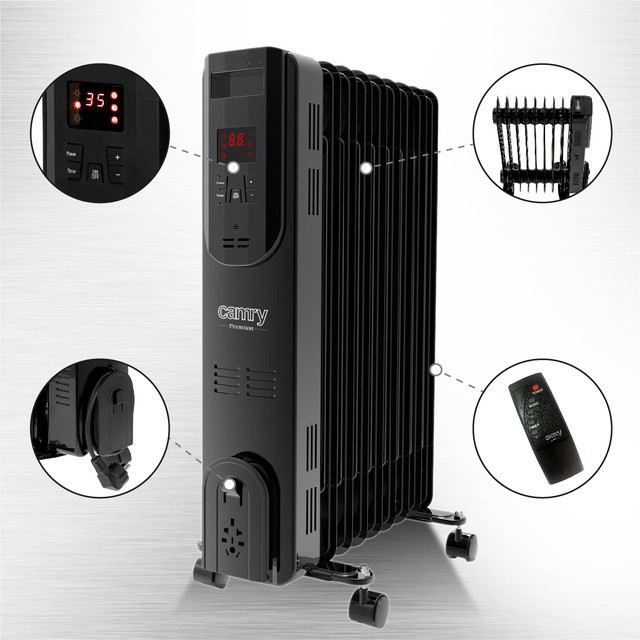 Незамінний у разі виходу з ладу опалювальної системи. Радіатор дає змогу регулювати температуру в діапазоні 15 °C — 35°, працює на 3 рівнях потужності.