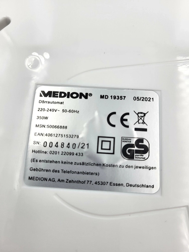 Отже, дегідратор MEDION MD 19357 не тільки забезпечує дбайливе сушіння фруктів, овочів і зелені, але і є прекрасним елементом декору, який надасть вашій кухні шик і елегантність. Він поєднує в собі функціональність, стиль і надійність, створюючи ідеальне поєднання для всіх прихильників здорового харчування та гарного дизайну.
