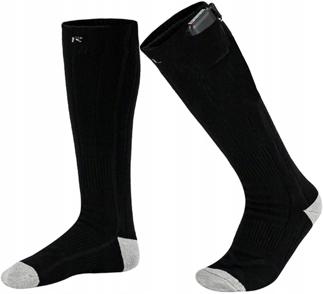 - БАТАРЕЇ У КОМПЛЕКТІ - До комплекту шкарпеток входять дві батареї, що перезаряджаються. Після під'єднання ви ховаєте їх у спеціальні кишені у верхній частині шкарпеток. Заряджання здійснюється через USB-кабель. Завдяки розгалужувачу кабель пристосований для одночасного заряджання двох акумуляторів.