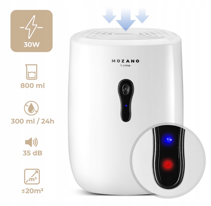 • Осушувач повітря Mozano Dry Vac білий (30 В, 0,3 л/24 год, 800 мл, Польща), фото 3
