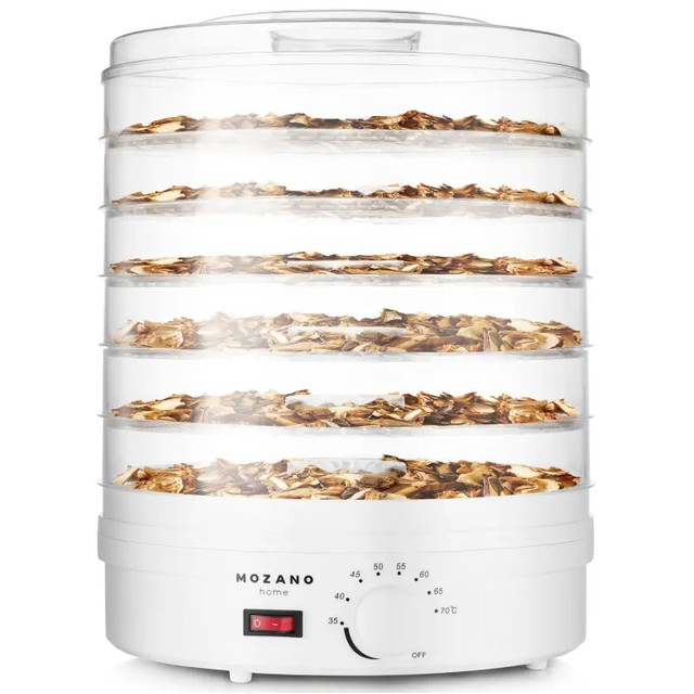 Завдяки високій потужності та великим і високим ситам пристрій MOZANO швидко висушить ваші улюблені фрукти, овочі, зелень або гриби.