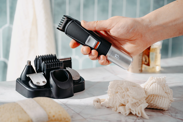 - Набір для догляду за волоссям 5 в 1: містить тример для носа, бритву, машинку для стриження волосся, тример для бороди та прецизійний тример для комплексного догляду за обличчям і тілом.