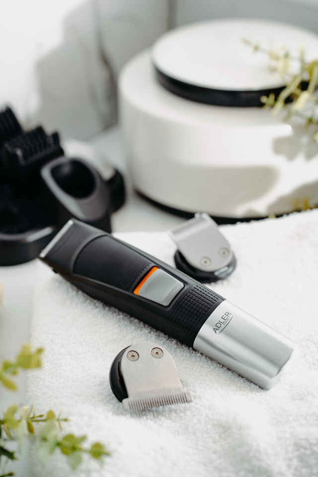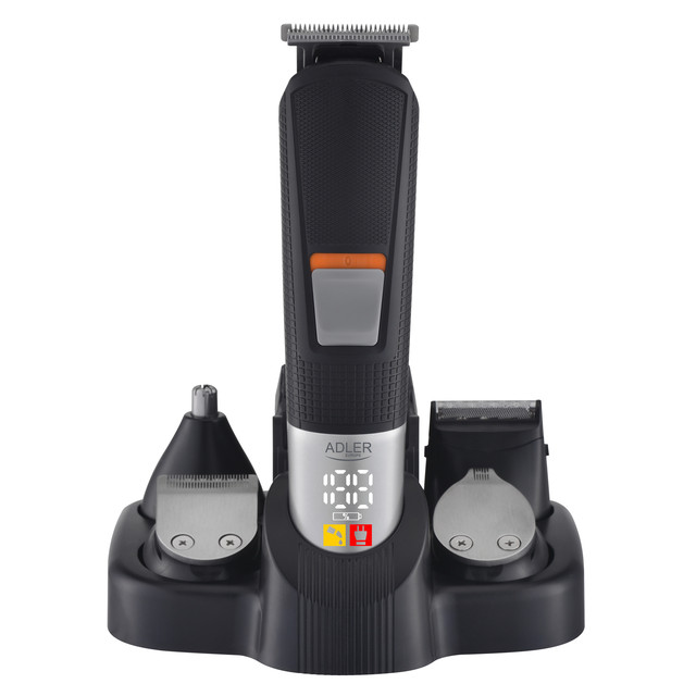 Познайомтеся з Adler AD 2943 — універсальним набором для догляду за волоссям, який задовольнить усі ваші потреби в голінні та стриження. Завдяки 5 змінним насадкам цей набір 5-в-1 стане ідеальним рішенням для кожного чоловіка, що цінує зручність і ефективність у щоденному догляді. Від тримера для носа, бритви, тримера для волосся й бороди до прецизійного тримера — все, що вам потрібно, можна знайти в одному елегантному пристрої.