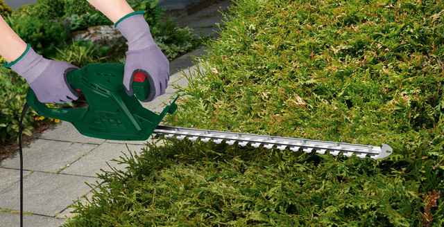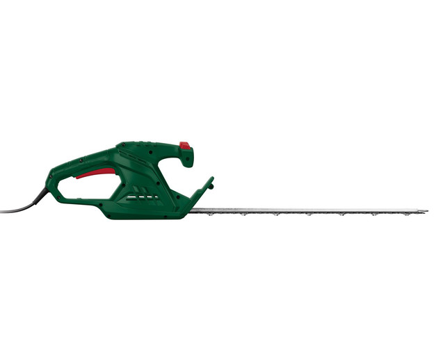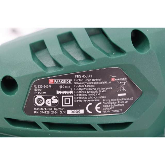 Представляємо PARKSIDE Електричний кущоріз PHS 450 A1 — потужний і надійний інструмент для ідеального стриження чагарників і дерев. З потужним 450-ватним електродвигуном і високою швидкістю різання до 3400 рухів за хвилину, цей кущоріз effortlessly справляється з гілками завтовшки до 12 мм. Його 50-сантиметрове лезо з відстанню між зубами 16 мм забезпечує точне й акуратне стриження.