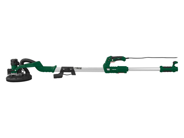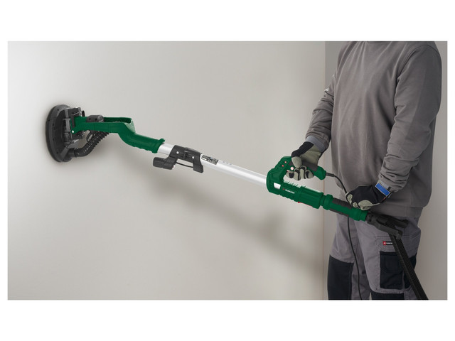 Шліфувальна машина для стін і стель Parkside PWDS 920 B2 — це потужний і універсальний інструмент для опоряджувальних робіт. Обладнана двигуном на 710 Вт і телескопічною штангою, яка висувається із 145 до 170 см, вона дає змогу легко обробляти як стіни, так і стелі, включно з важкодоступними ділянками. Шліфувальна тарілка діаметром 225 мм із липучкою забезпечує швидку зміну абразивів, а можливість під'єднання пилососа та вбудована LED-підсвітка роблять роботу чистішою та зручнішою. Це ідеальний вибір для професіоналів і домашніх майстрів.