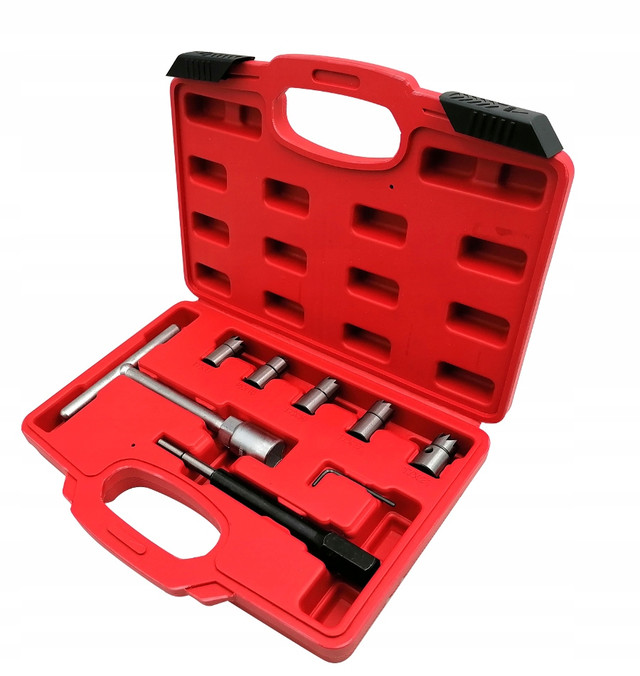 - Повна комплектація: Містить усі необхідні інструменти для ефективного обслуговування гнізд форсунок.