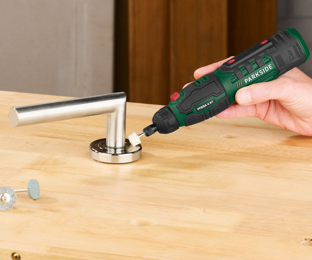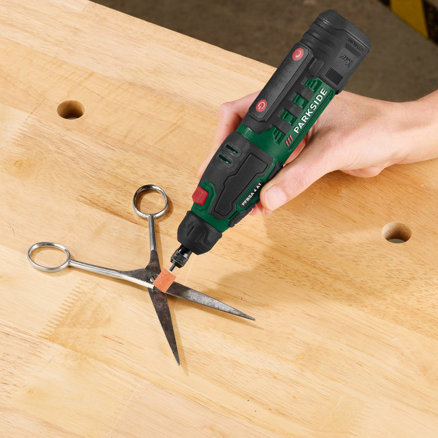 Акумуляторний гравер Parkside PFBSA 4 A1 — універсальний інструмент, призначений для точних робіт, як-от фрезерування, шліфування, полірування, очищення та гравіювання.
