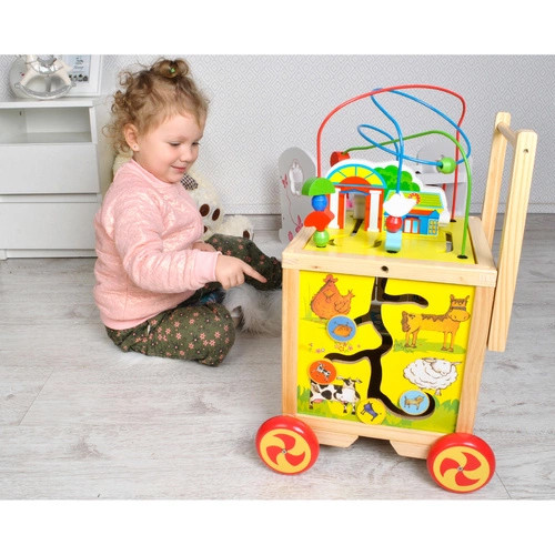 Дерев'яний штовхач-ходунки KRUZZEL 22606 — це ідеальна іграшка для малюків, яка допомагає розвивати навички ходьби та координацію рухів. За допомогою цього інтерактивного пристрою дитина зможе впевнено робити свої перші кроки, а також розвивати дрібну моторику та творчі здібності. Штовхач обладнаний багатофункціональним освітнім кубиком, який пропонує безліч ігрових елементів, що сприяють утворенню через гру. Виготовлений із натурального дерева, цей штовхач не тільки безпечний, але й стане стильним доповненням до дитячої кімнати.