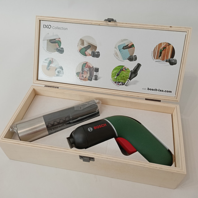 - Bosch IXO — це дуже компактна та легка акумуляторна електровикрутка з вбудованою 3.6 В літій-іонною батареєю ємністю 1.5 Ah (5.4 Вт/год). Вона забезпечує повний контроль і простоту загвинчування від початку до кінця з крутним моментом 4.5 Нм у жорстких матеріалах і 3 Нм м'яких.