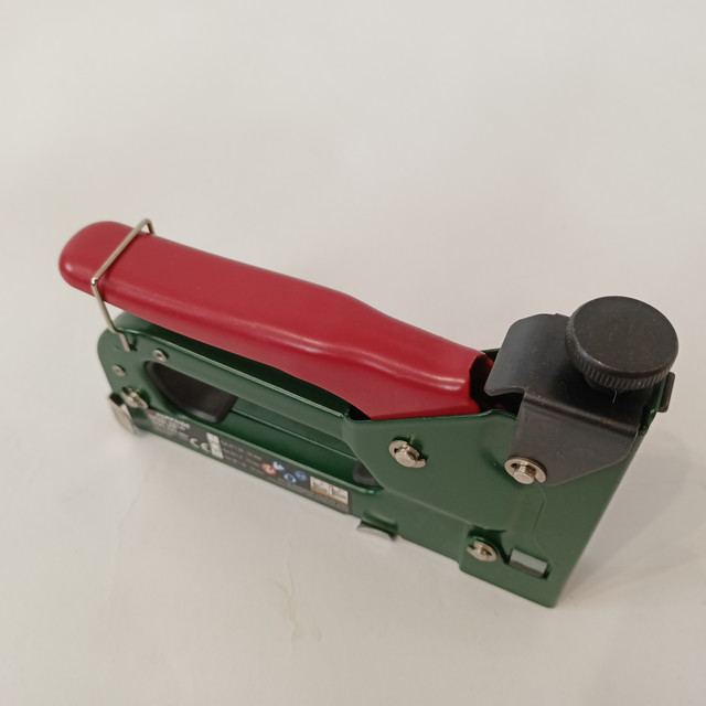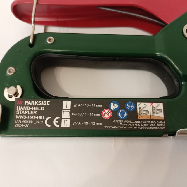 Ручний степлер PARKSIDE WWS-HAT-H01 — це надійний і універсальний інструмент, призначений для легкого й ефективного кріплення різних матеріалів, як-от тканини, плівки, шпалери та інші покриття. Завдяки ергономічному дизайну та легкій вазі, степлер забезпечує комфортне використання навіть у разі тривалої роботи. Захист від випадкового спрацьовування гарантує безпеку в процесі експлуатації, запобігаючи небажаному вивільненню скоб. Механізм подавання скоб дає змогу швидко й без затримок виконувати завдання з кріплення, що робить цей інструмент незамінним помічником у домашньому господарстві та професійній діяльності.