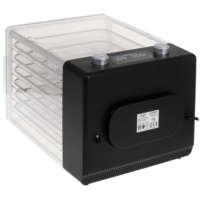 Електросушарка Adler AD 6660 з потужністю 600 Вт і 6 автоматичними програмами — зручне рішення для домашнього приготування сушених фруктів, овочів, грибів і трав. Складана конструкція, регульовані температура та час, 6 сталевих піддонів і BPA FREE аксесуари.